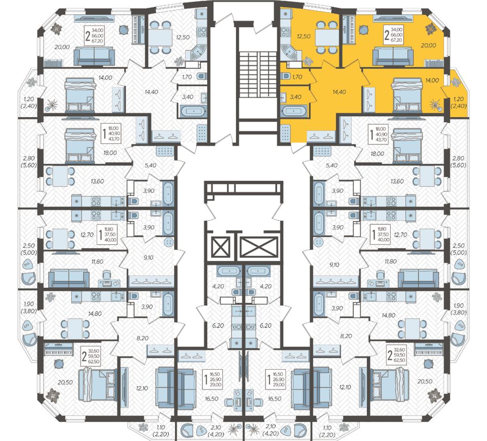 | 2-комн. | 60 - 68 м² | 8,4 - 9,6 млн ₽ |