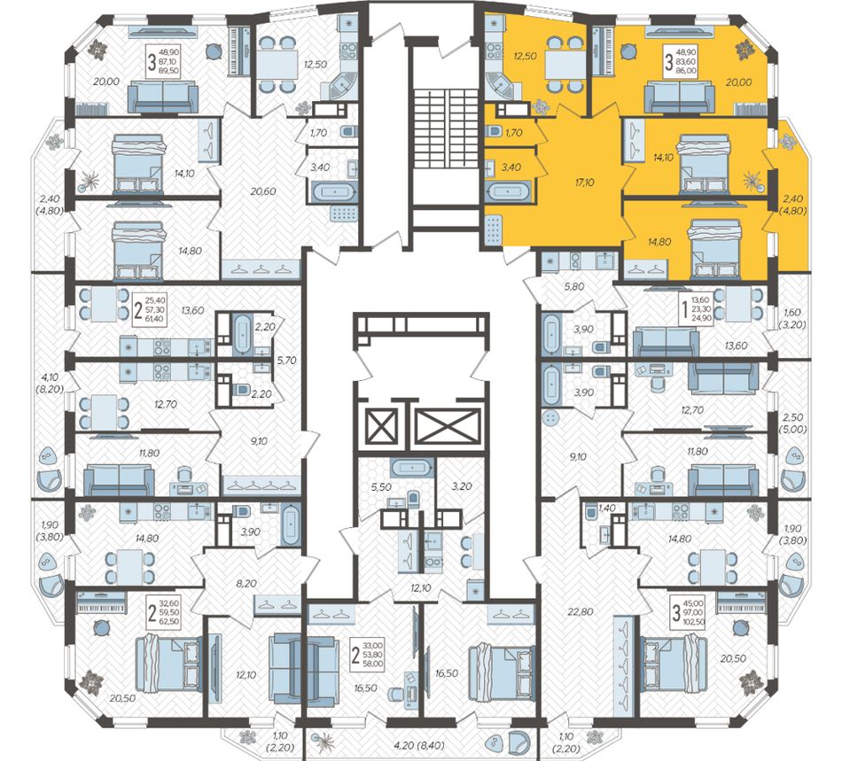 | 3-комн. | 78 - 79 м² | 9,5 - 10,3 млн ₽ |