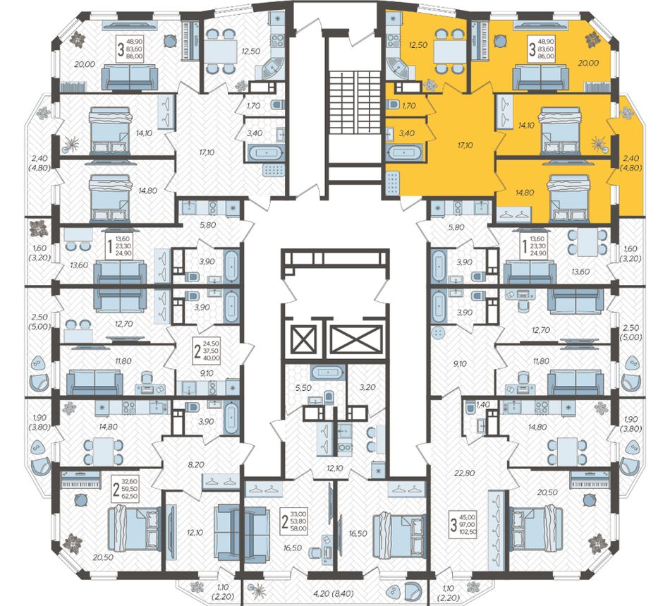 | 3-комн. | 86 - 111 м² | 10 - 13,2 млн ₽ |