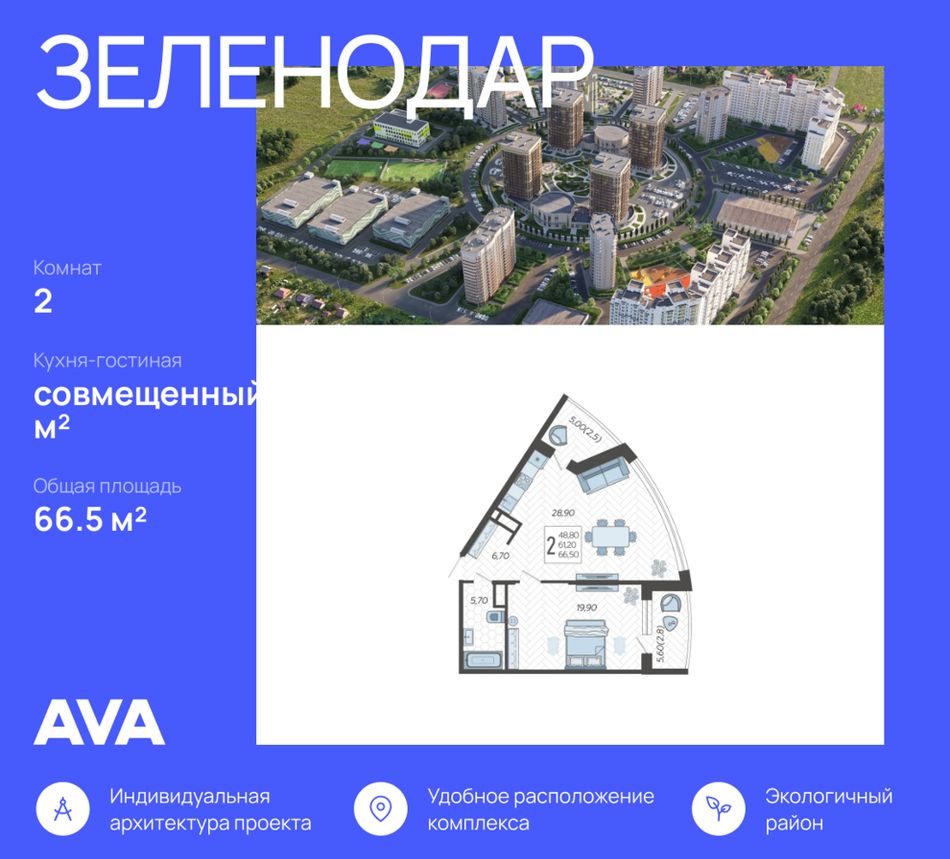 Продаётся 2-комнатная квартира в доме комфорт-класса Зеленодар (Литер 5а), сроком сдачи: 1 кв. 2023, общей площадью 66.5 кв.м., на 9 этаже. Предчистовая отделка, но с возможностью заказать отделку.