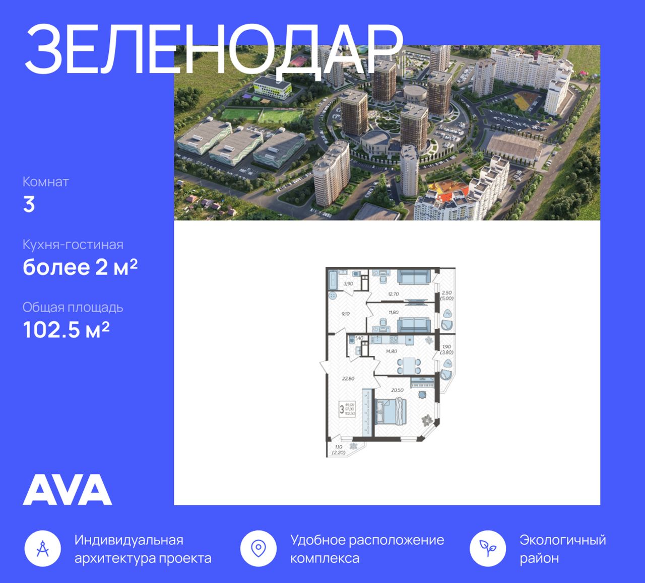 3-комнатная — 102,5 м² 16/16 эт. в Зеленодар