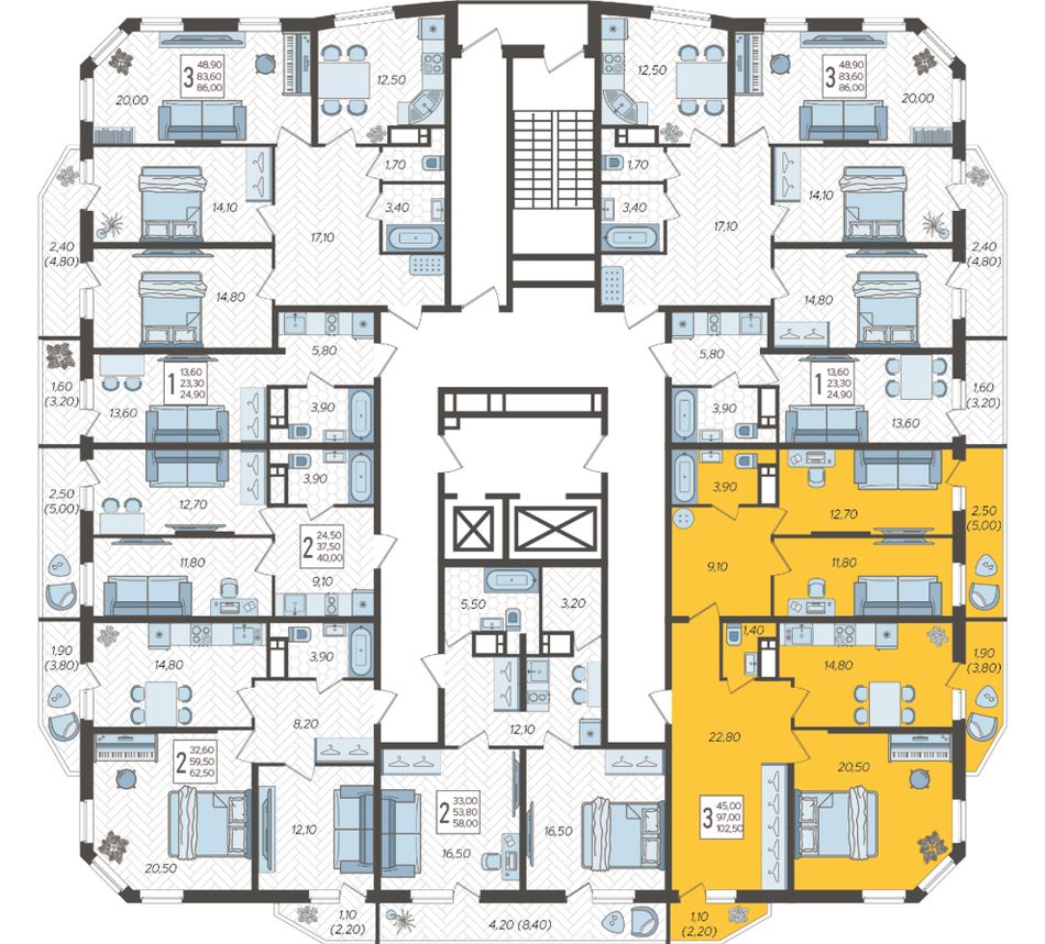 | 3-комн. | 86 - 111 м² | 10 - 13,2 млн ₽ |