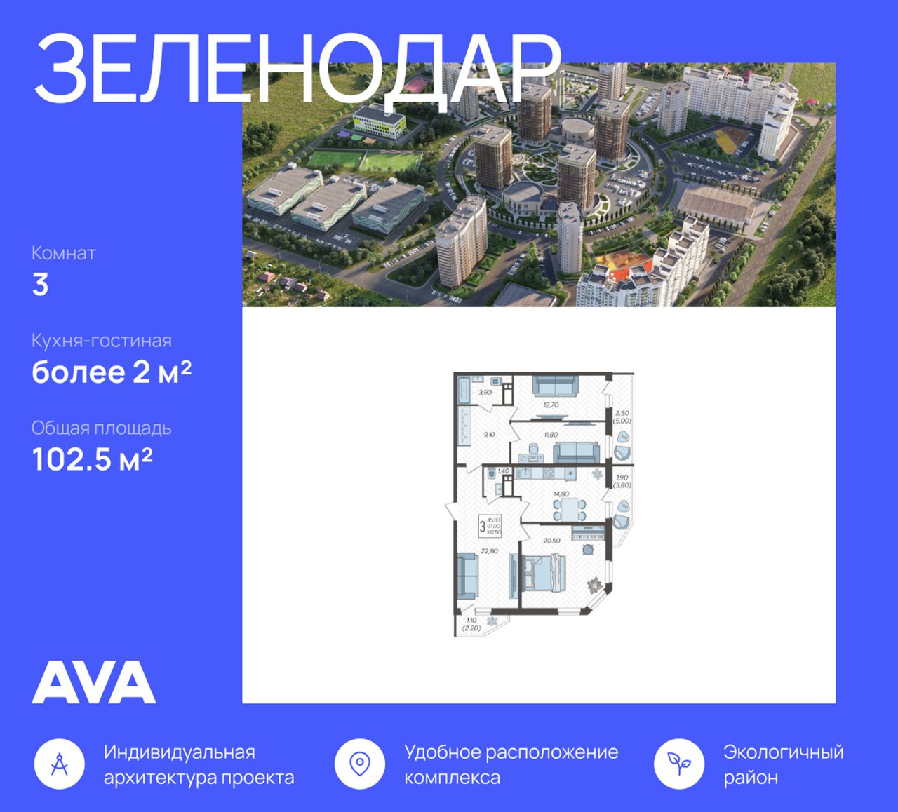 3-комнатная — 102,5 м² 15/16 эт. в Зеленодар