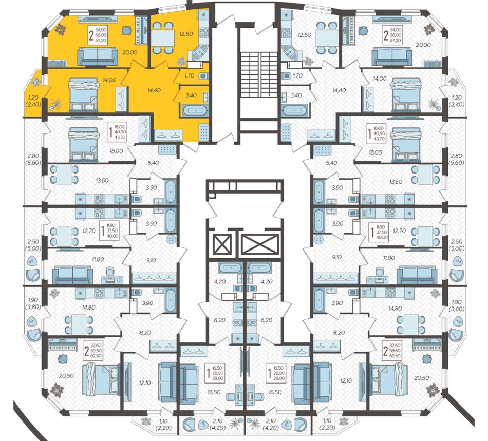 2-комнатная — 67,2 м² 2/16 эт. в Зеленодар