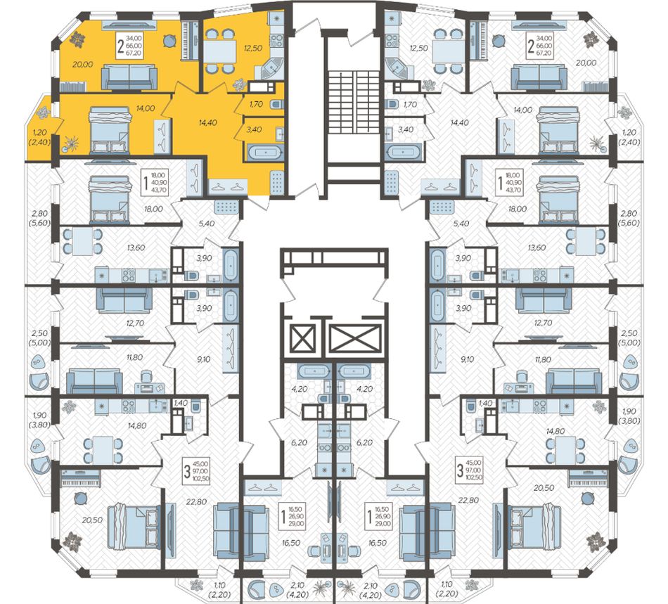 2-комнатная — 67,2 м² 15/16 эт. в Зеленодар