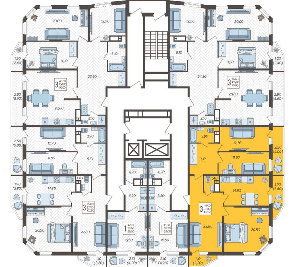 3. 3-комнатная, 102,5 м²