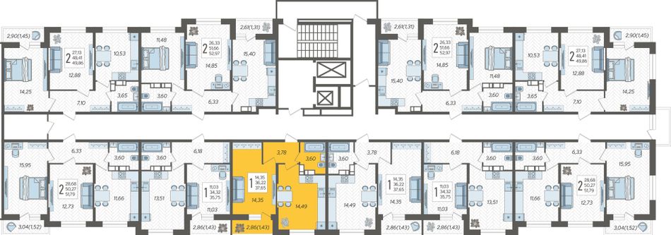 1-комнатная — 37,65 м² 17/19 эт. в Смородина