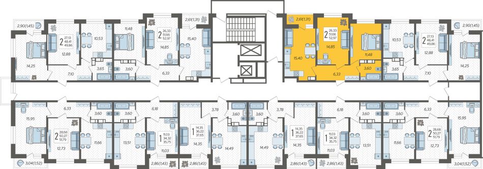 2-комнатная — 52,97 м² 17/19 эт. в Смородина