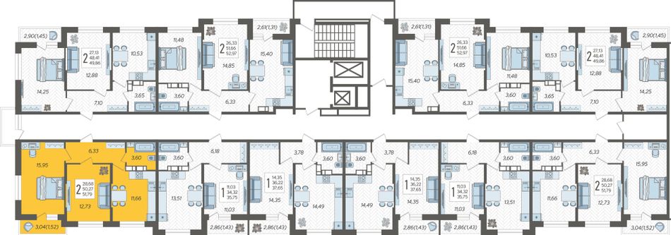 2-комнатная — 51,79 м² 17/19 эт. в Смородина