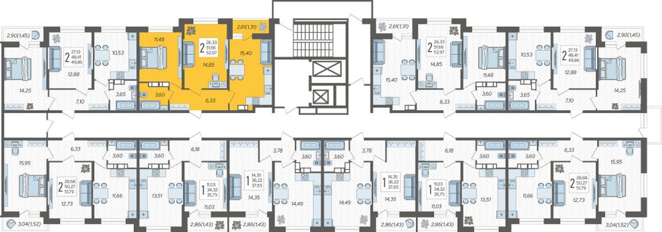 2-комнатная — 52,97 м² 18/19 эт. в Смородина