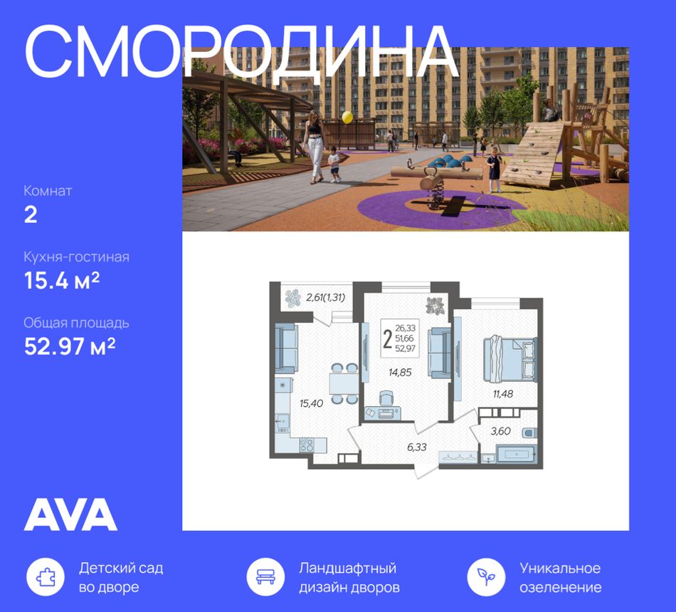 ЖК "Смородина" - это семейный квартал из десяти шестнадцатиэтажных домов класса комфорт с просторными парковками, торговыми галереями и пунктами бытового обслуживания на первых этажах, безбарьерным доступом для мам с малышами и маломобильных граждан. В каждом подъезде - места для хранения велосипедов и колясок, бесшумные лифты, видеонаблюдение. Все коммуникации центральные. Во дворах современные детские и спортивные площадки.