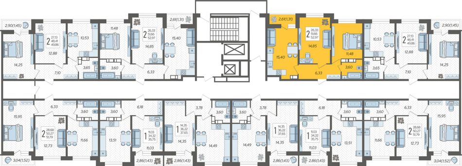 2-комнатная — 52,97 м² 18/19 эт. в Смородина