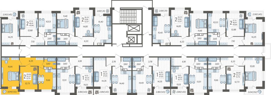 2-комнатная — 51,79 м² 12/19 эт. в Смородина