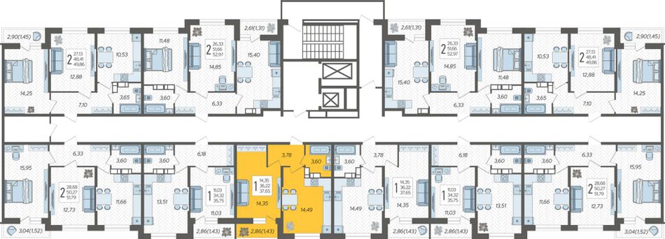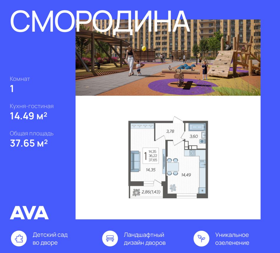 1-комнатная — 37,65 м² 14/19 эт. в Смородина