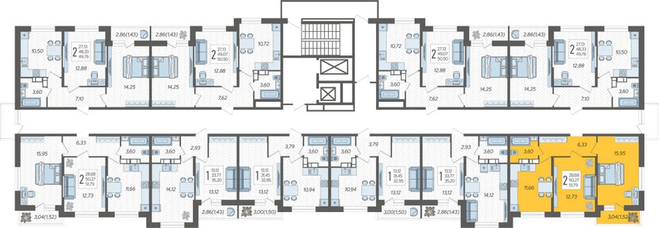 Продаётся 2-комнатная квартира №103 в ЖК «Смородина» (Корпус 11, Секция 1), на 12 этаже 16-этажного дома, срок сдачи: 4 кв. 2025, общей площадью 51,79 кв. м. Без отделки.