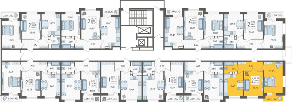 2-комнатная — 51,79 м² 15/19 эт. в Смородина