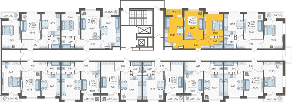 2-комнатная — 52,97 м² 16/19 эт. в Смородина
