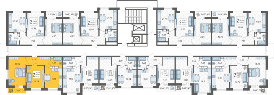 Продаётся 2-комнатная квартира №148 в ЖК «Смородина» (Корпус 11, Секция 1), на 16 этаже 16-этажного дома, срок сдачи: 4 кв. 2025, общей площадью 51,79 кв. м. Без отделки.