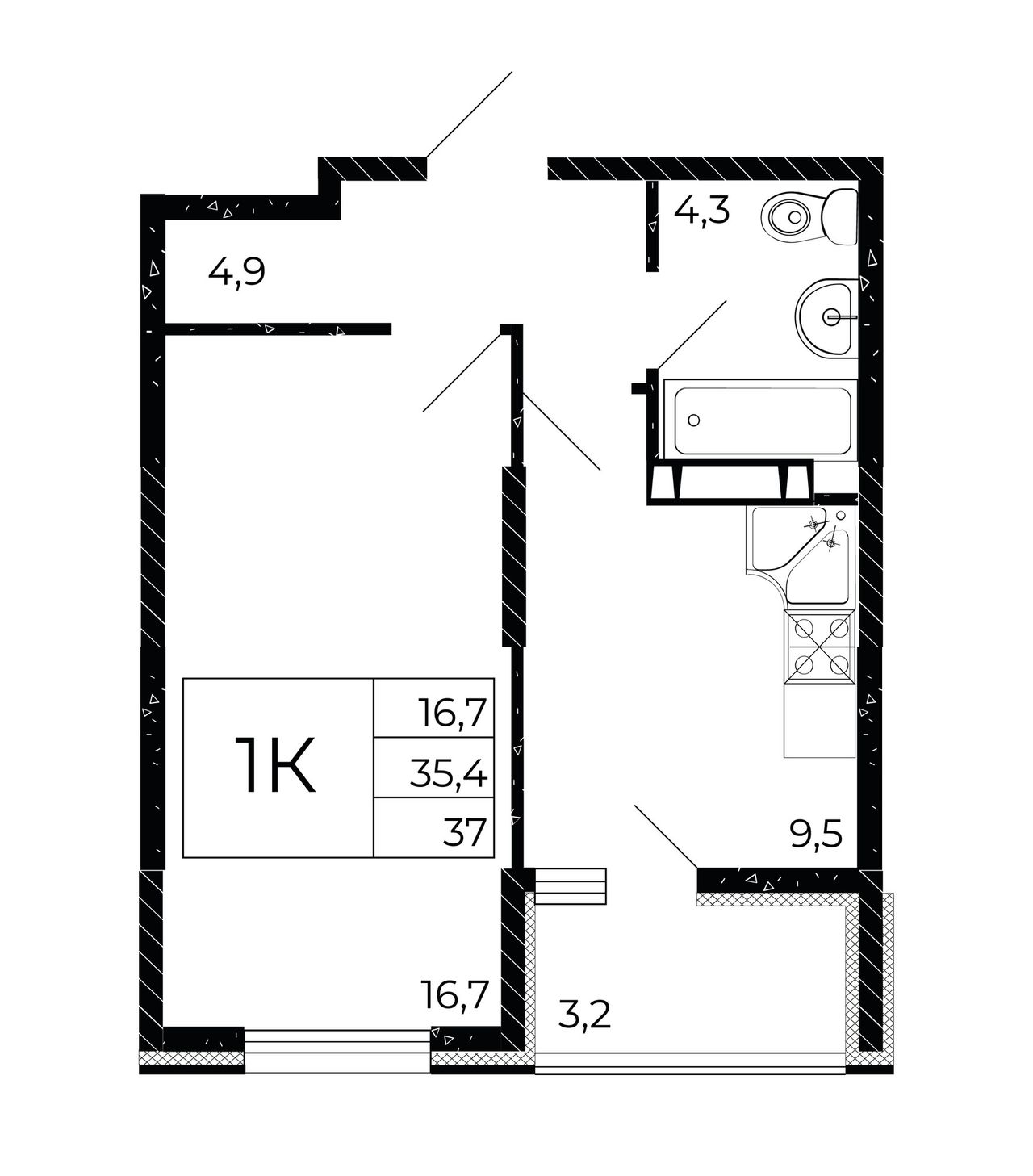 Общая площадь37 м²