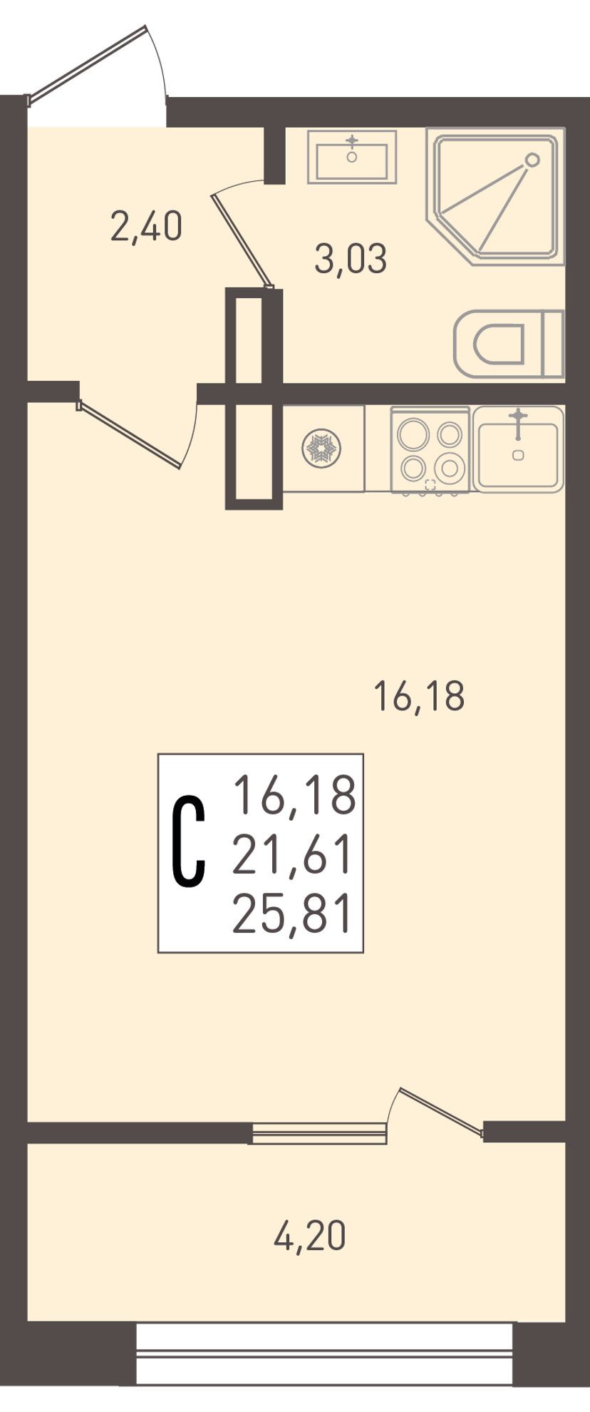 Общая площадь25,81 м²