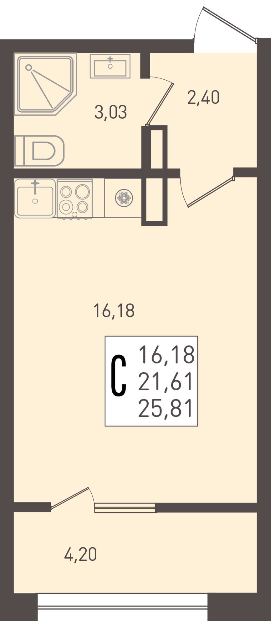 Студия — 25,81 м² 7/9 эт. в ЮГГЕ