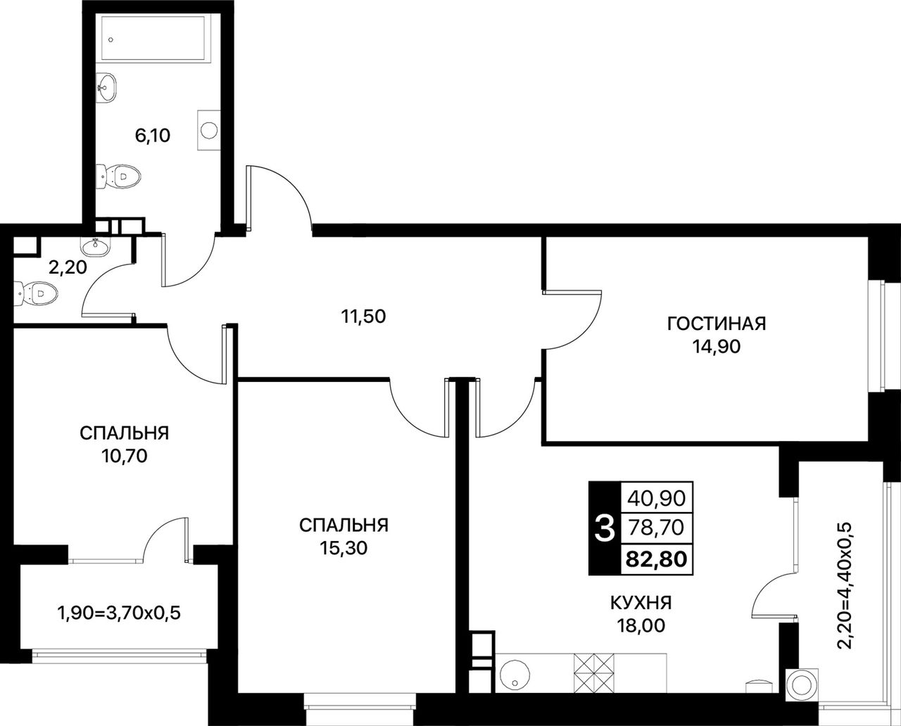 | 3-комн. | 82 м² | 9,9 млн ₽ |