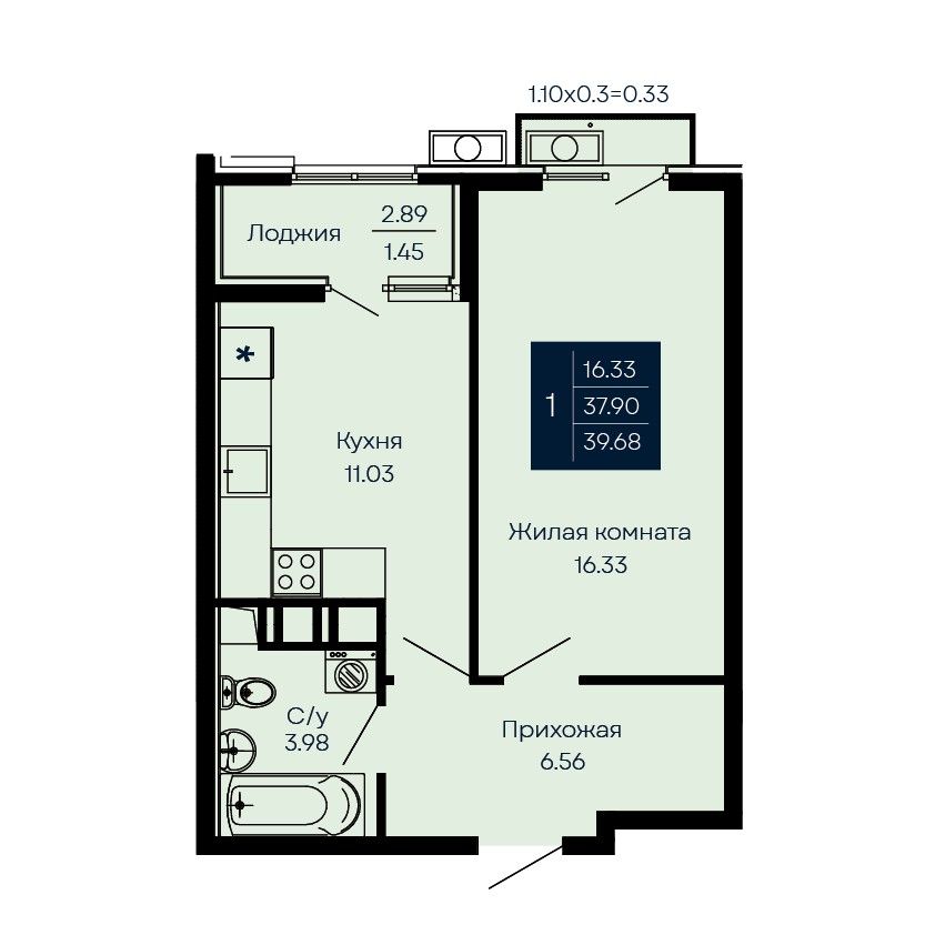 Общая площадь39,68 м²