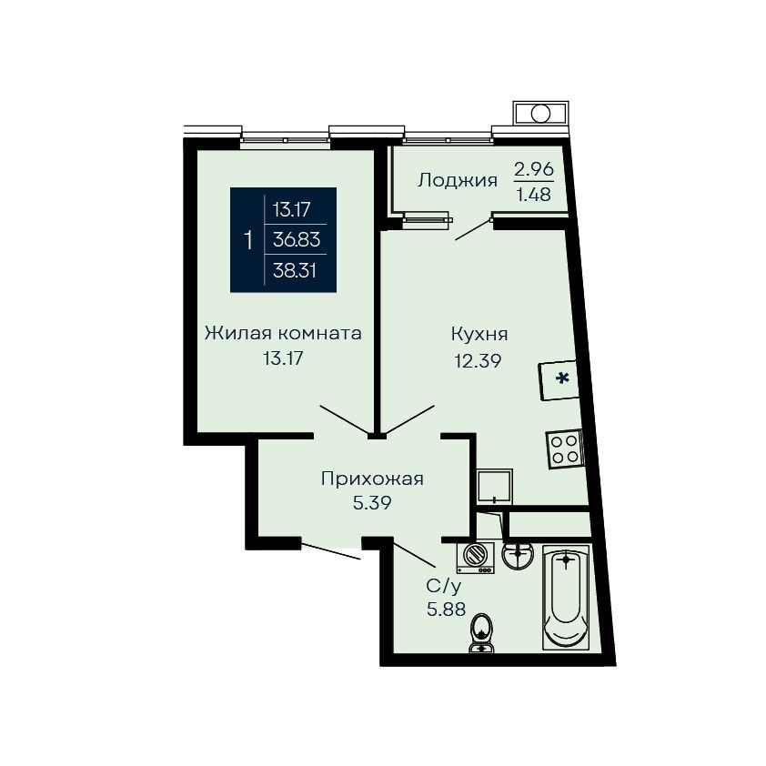 Общая площадь38,31 м²