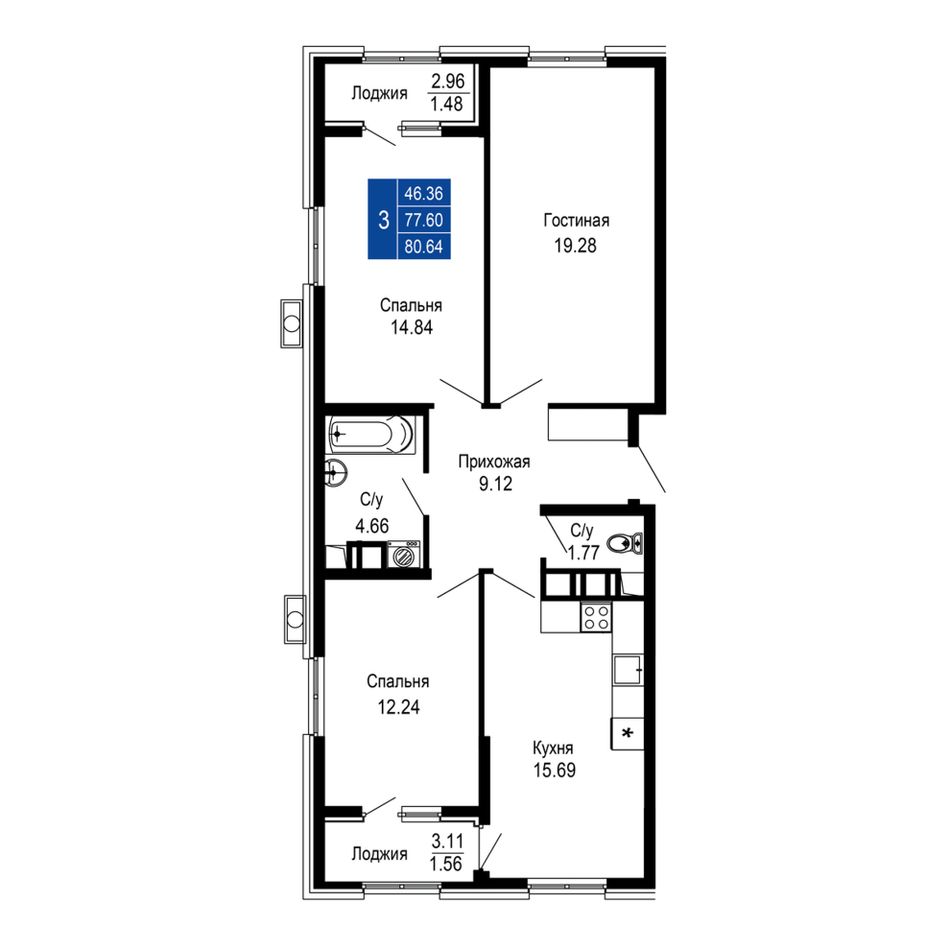 Общая площадь80,64 м²