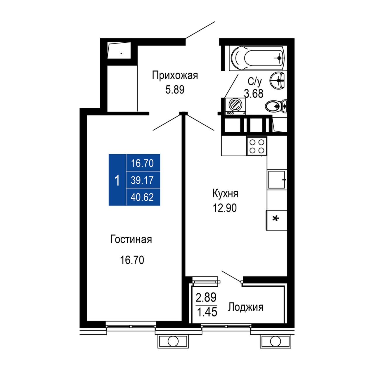 1-комнатная — 40,62 м² 2/14 эт. в Море