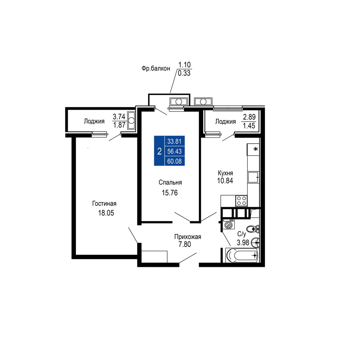 Общая площадь60,08 м²