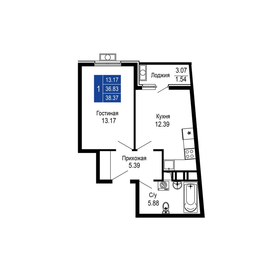 1-комнатная — 38,37 м² 3/14 эт. в Море