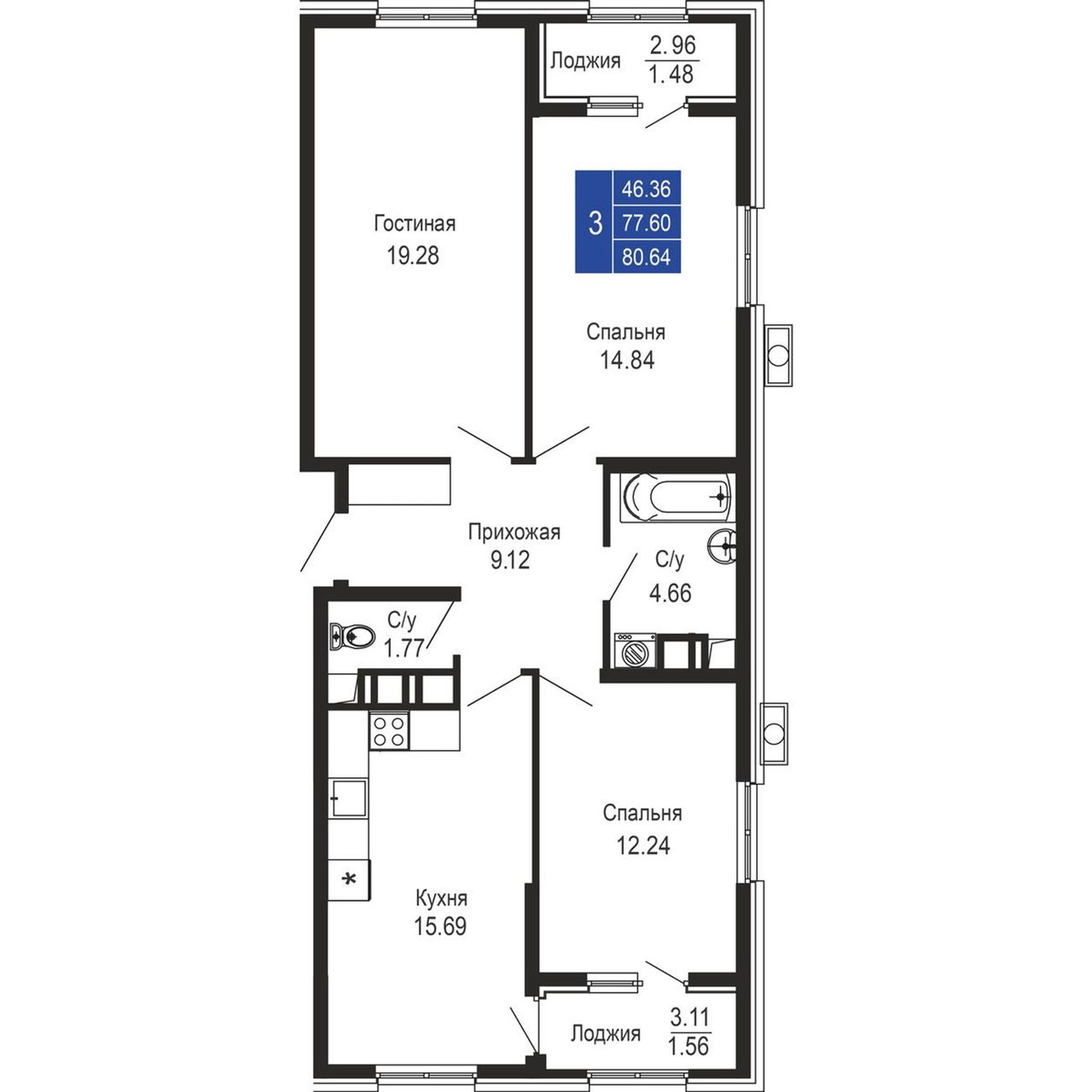 Общая площадь80,64 м²