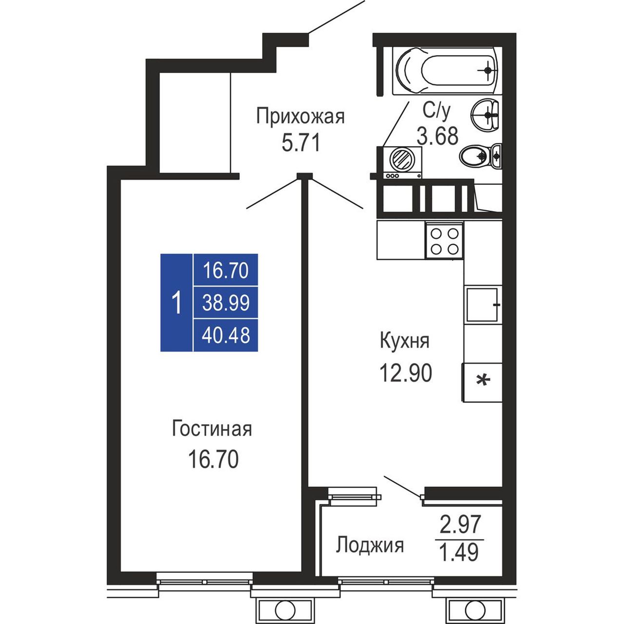 1-комнатная — 40,48 м² 1/14 эт. в Море