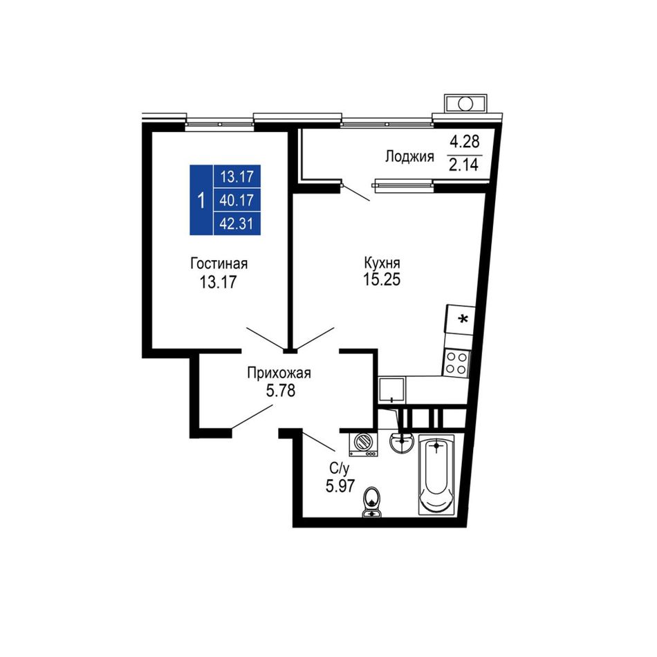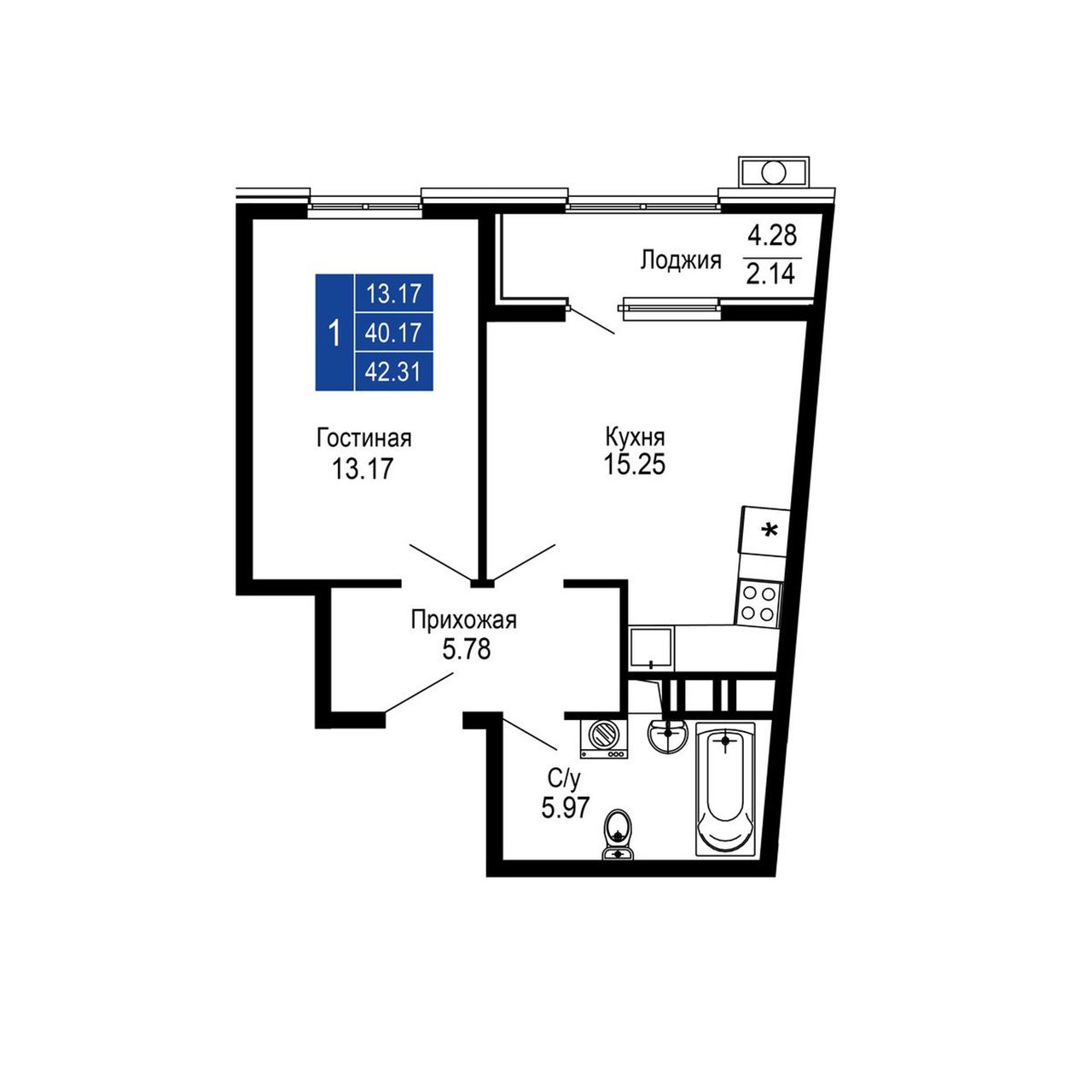 1-комнатная — 42,31 м² 1/14 эт. в Море