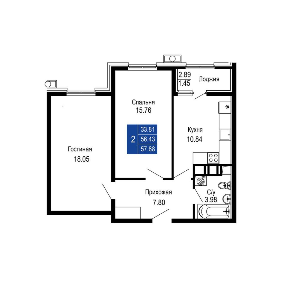 Общая площадь57,88 м²