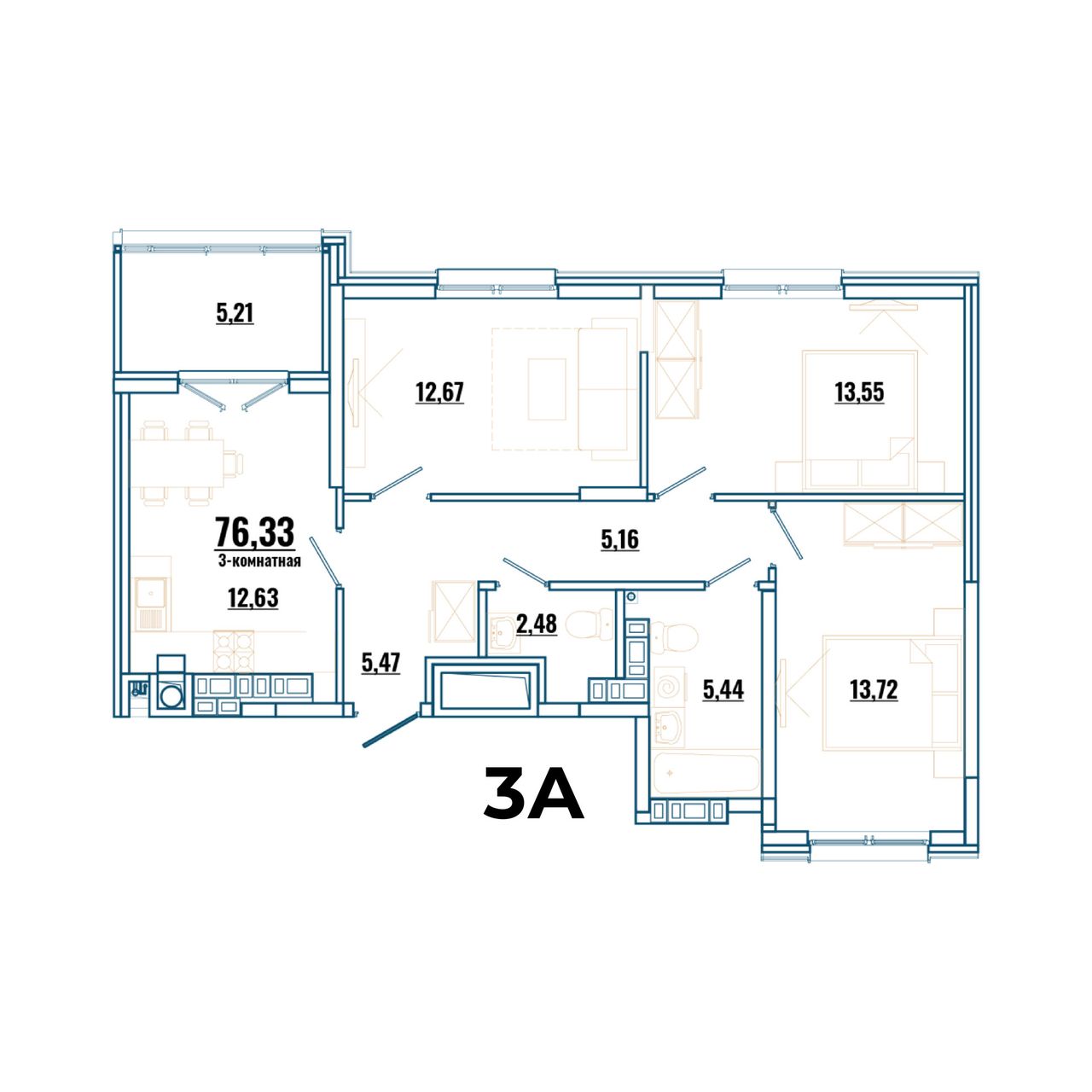 3-комнатная — 73,73 м² 2/4 эт. в Локация 9-11
