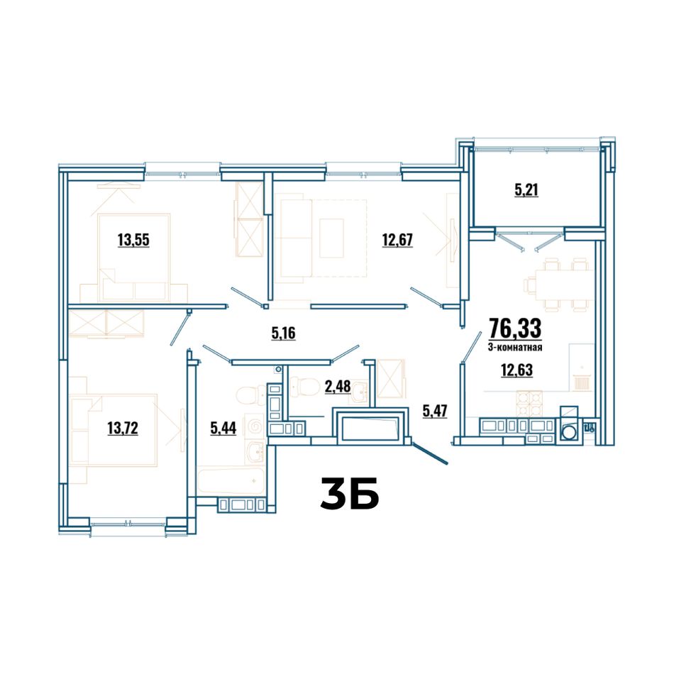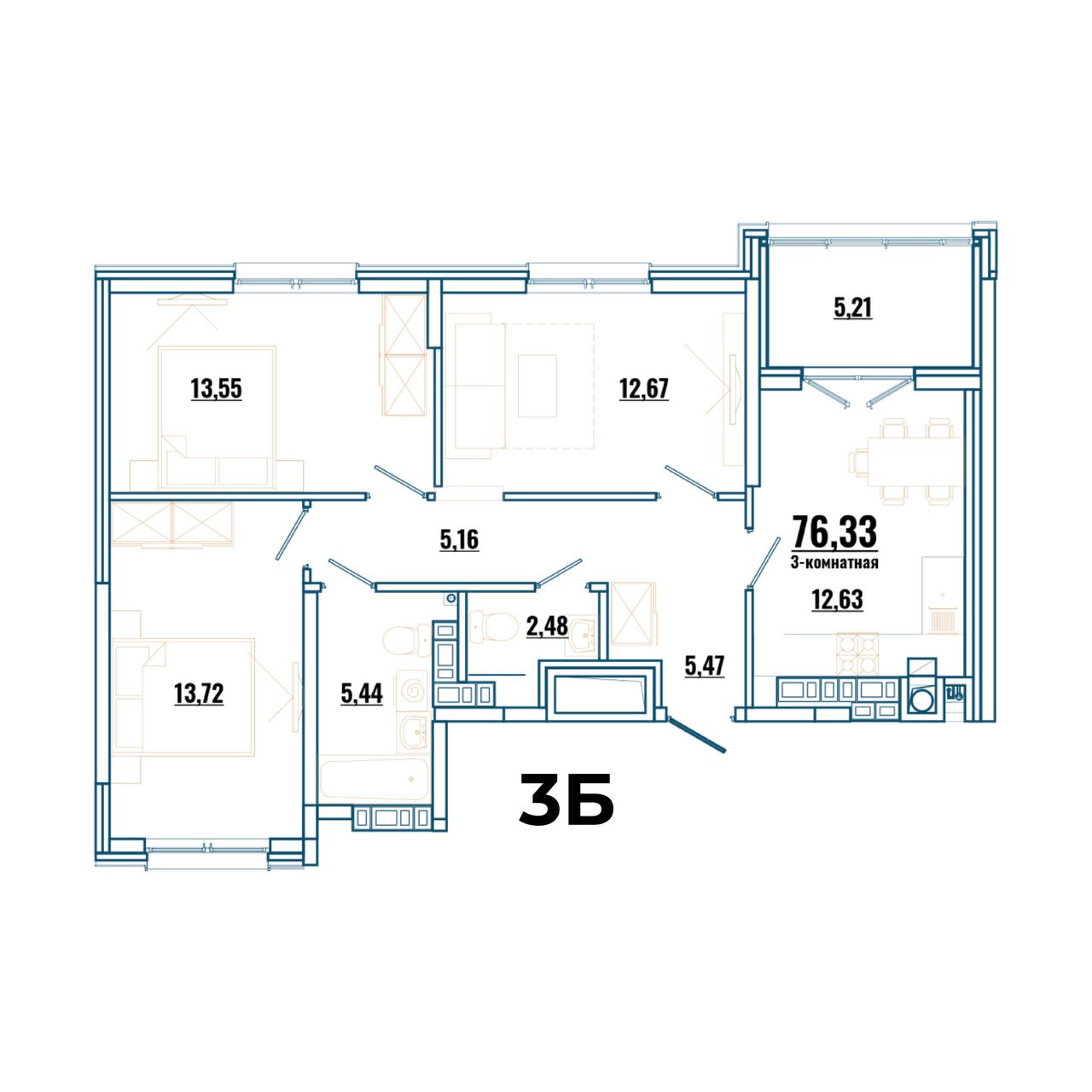 3-комнатная — 73,73 м² 4/4 эт. в Локация 9-11