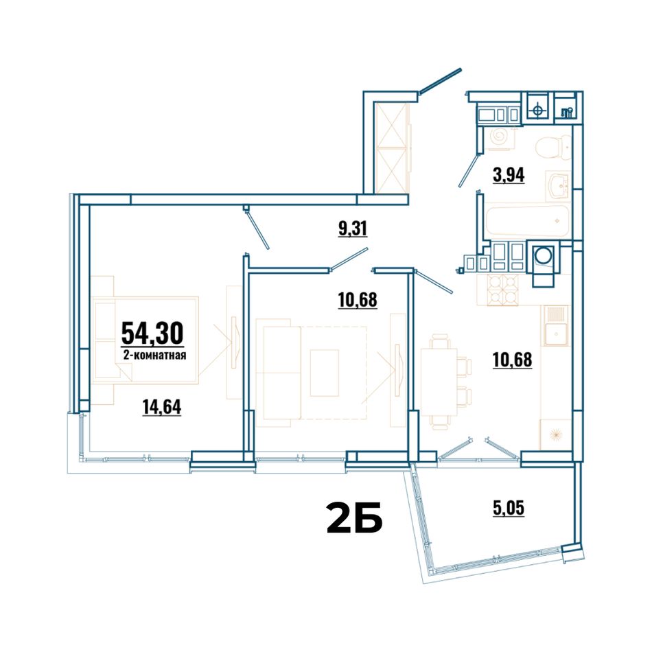2-комнатная — 50,77 м² 1/4 эт. в Локация 9-11