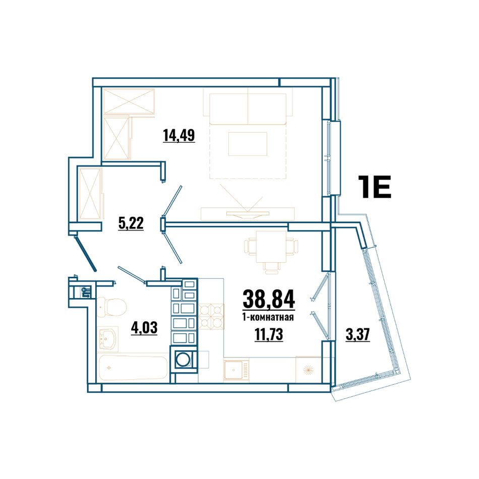 1-комнатная — 36,48 м² 1/4 эт. в Локация 9-11