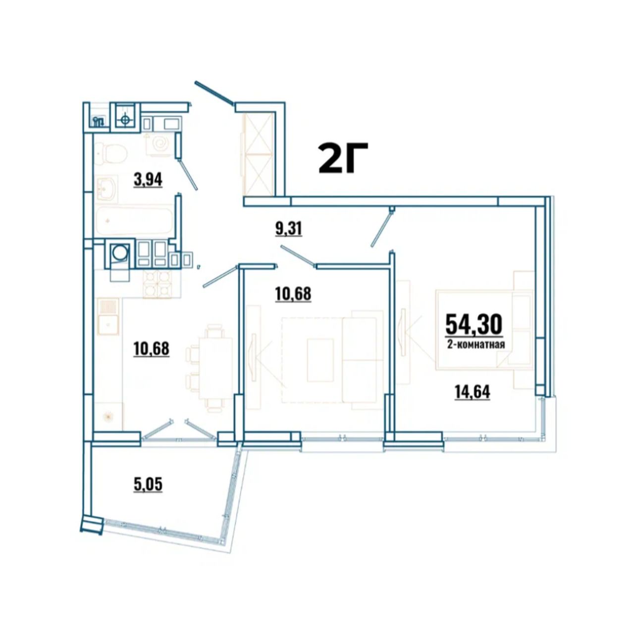 2-комнатная — 50,77 м² 1/4 эт. в Локация 9-11