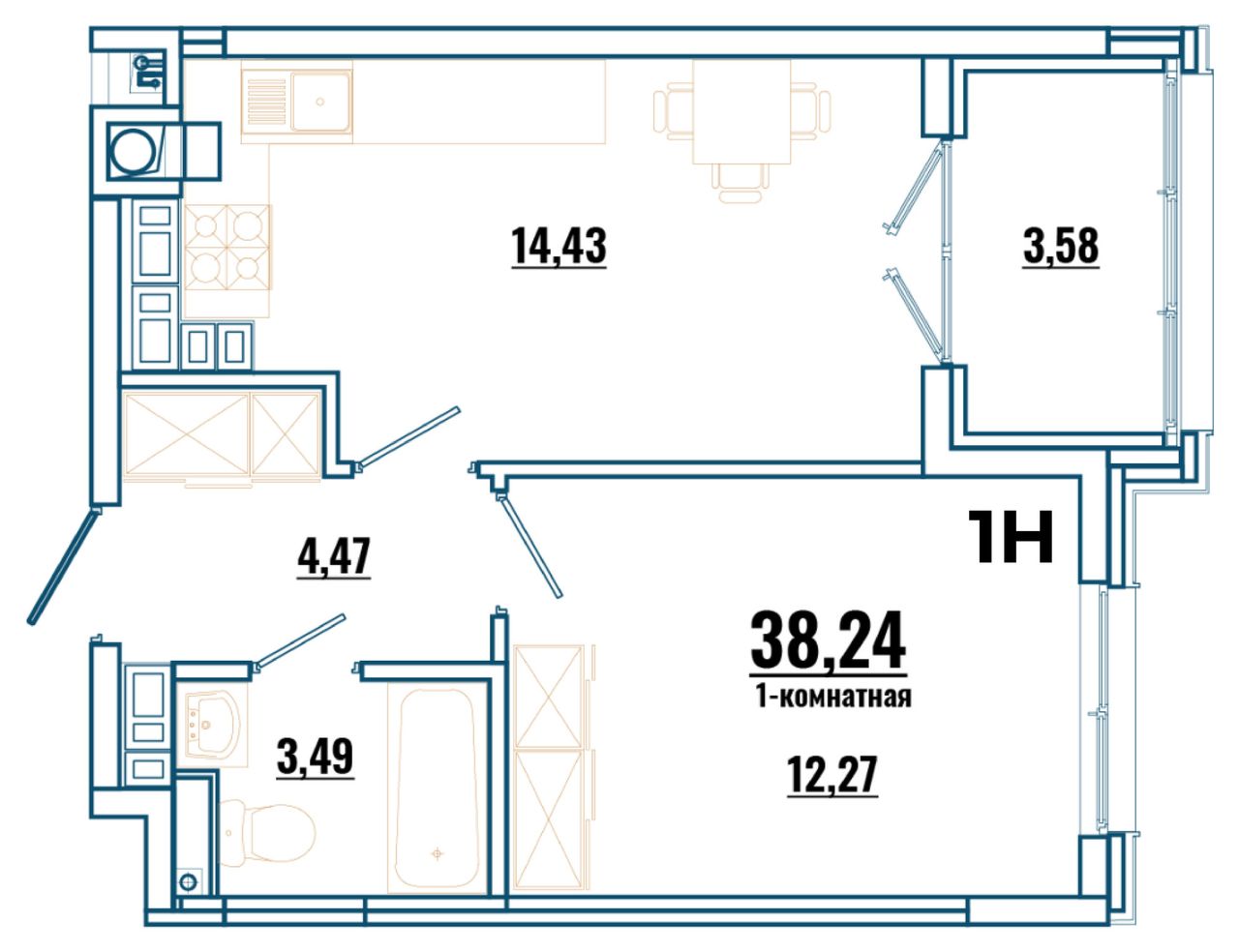 1-комнатная — 36,45 м² 4/4 эт. в Локация 9-11
