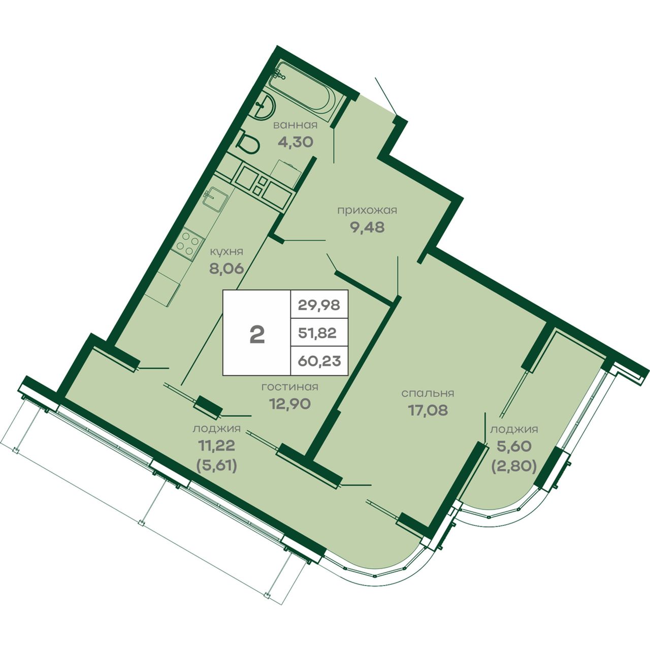 2-комнатная — 60,23 м² 2/17 эт. в SkyПАРК (СкайПАРК)