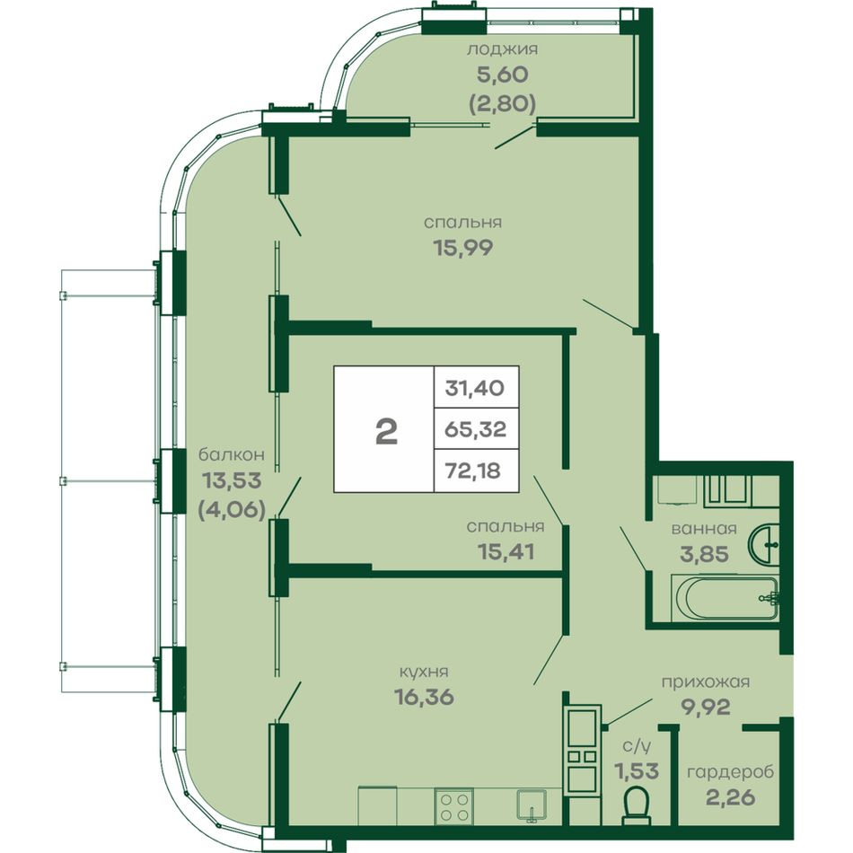 Общая площадь72,18 м²