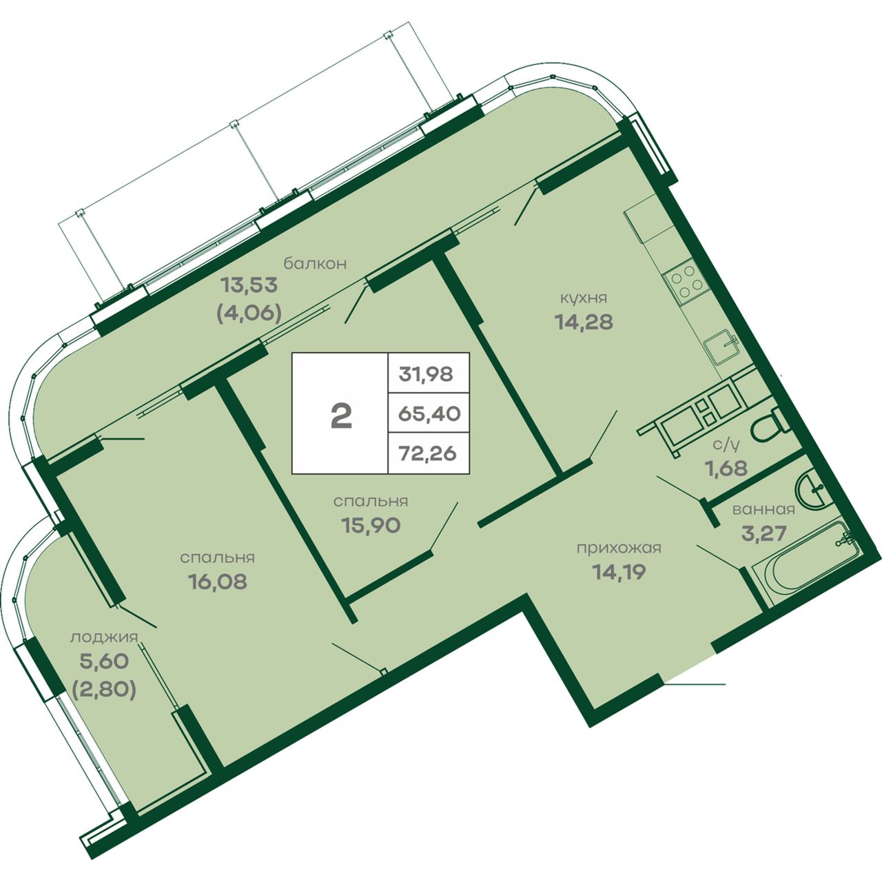 2-комнатная — 72,26 м² 4/17 эт. в СкайПАРК