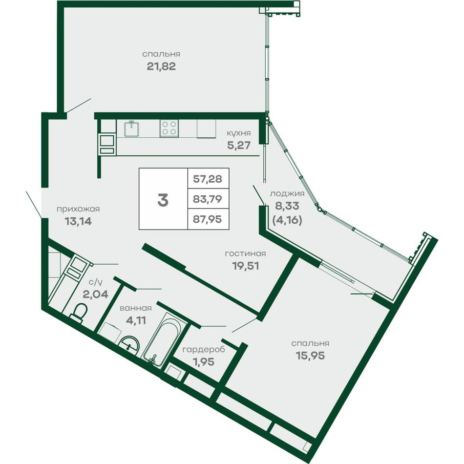 3-комнатная — 87,95 м² 15/17 эт. в SkyПАРК (СкайПАРК)