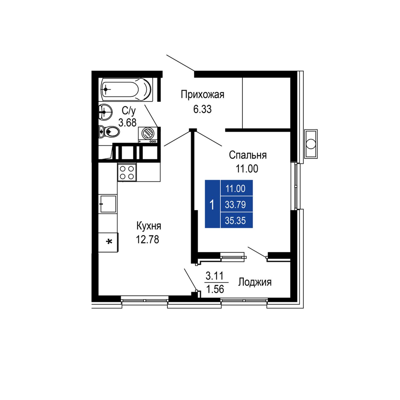 1-комнатная — 35,35 м² 1/14 эт. в Море