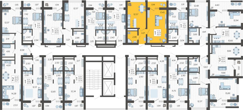 | 3-комн. | 80 - 82 м² | 21,9 - 22,5 млн ₽ |