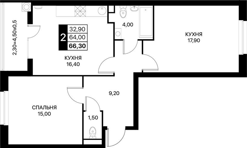 2-комнатная — 66,3 м² 2/20 эт. в Smartpolét (Смартполёт, Полет)