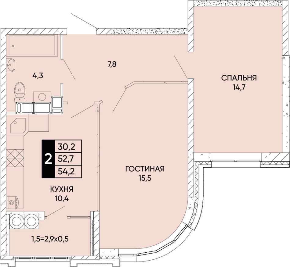 2-комнатная — 54,2 м² 18/22 эт. в Левобережье